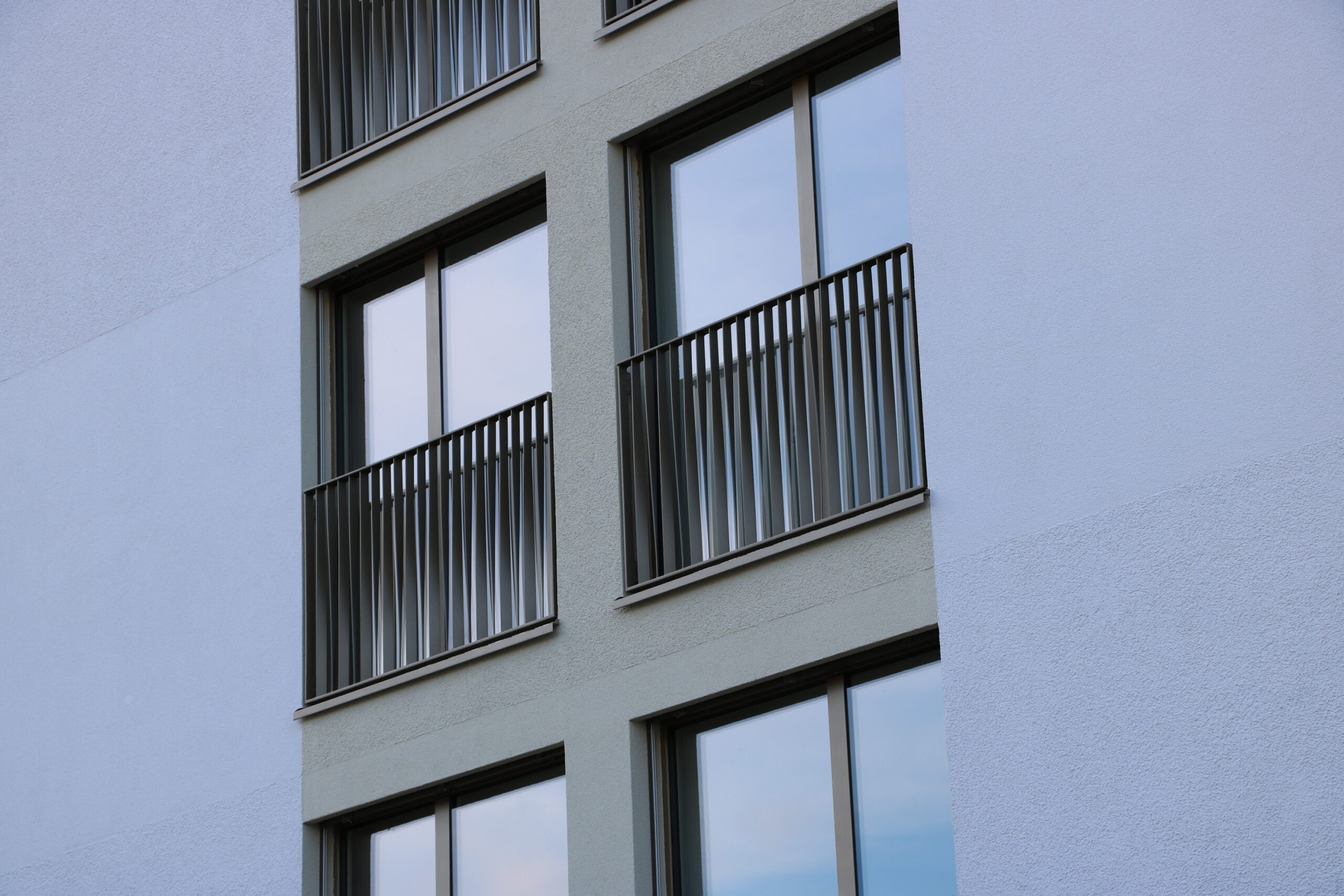 Für das zehngeschossige Gebäude mit Alterswohnungen übernahmen wir die Planung und Umsetzung der neuen Balkone und französischen Geländer. Eine besondere Herausforderung war die unkonventionelle Befestigung der Balkone: Diese wurden nicht am unteren Rand, sondern an der nachträglich aufgestockten Holzstruktur des Gebäudes verankert. Die tragenden seitlichen Fachwerke erhielten eine hochwertige Alucobond-Verkleidung, die eine moderne und funktionale Ästhetik schafft. Der Balkonboden besteht aus Mineralitplatten mit integrierter Entwässerungsrinne, die unsichtbar über die Fachwerke verläuft. Ein markantes Detail sind die im Grundriss abwechselnd um 45° gedrehten Staketen, die den Balkonen eine dynamische Struktur verleihen.