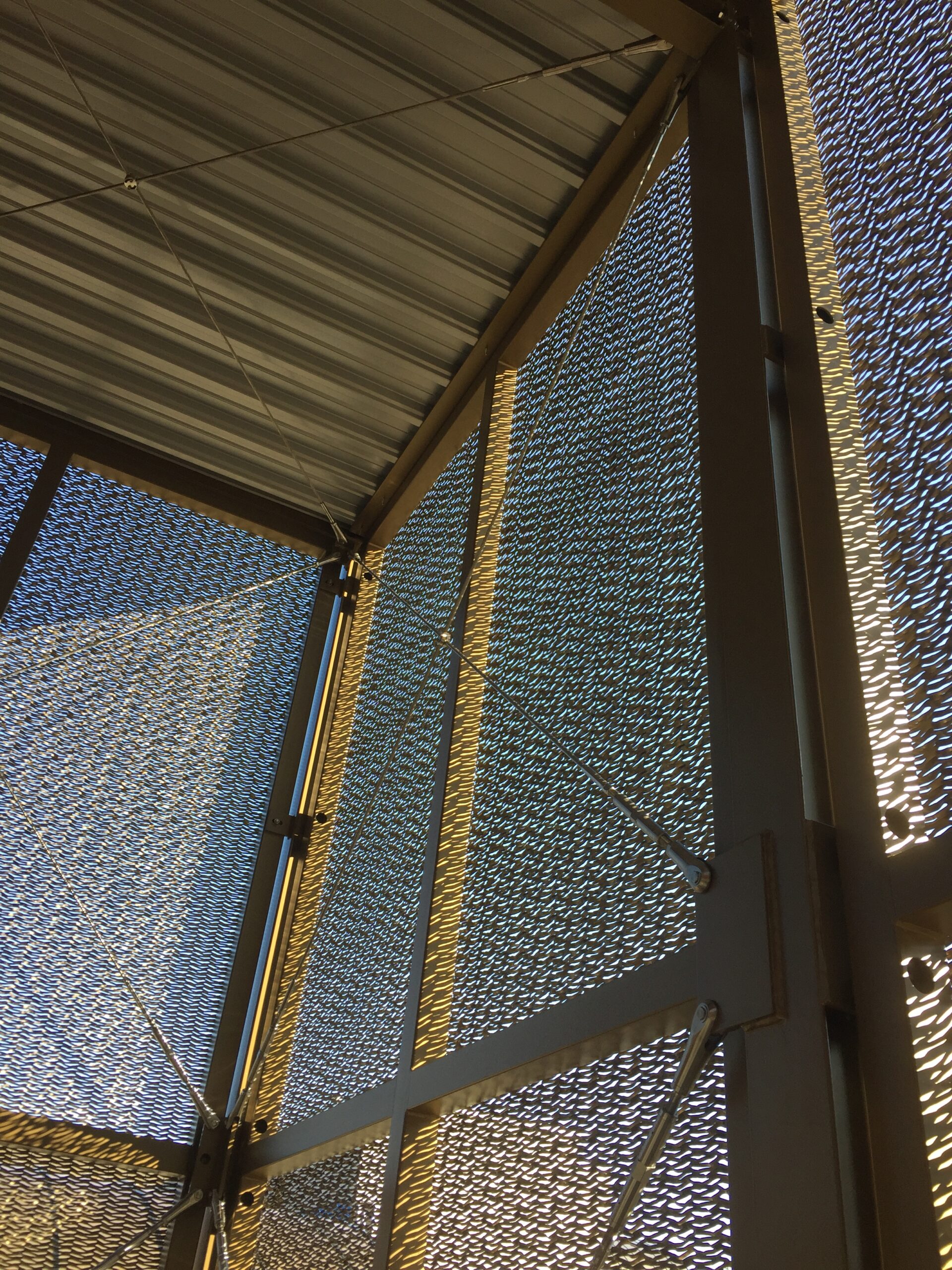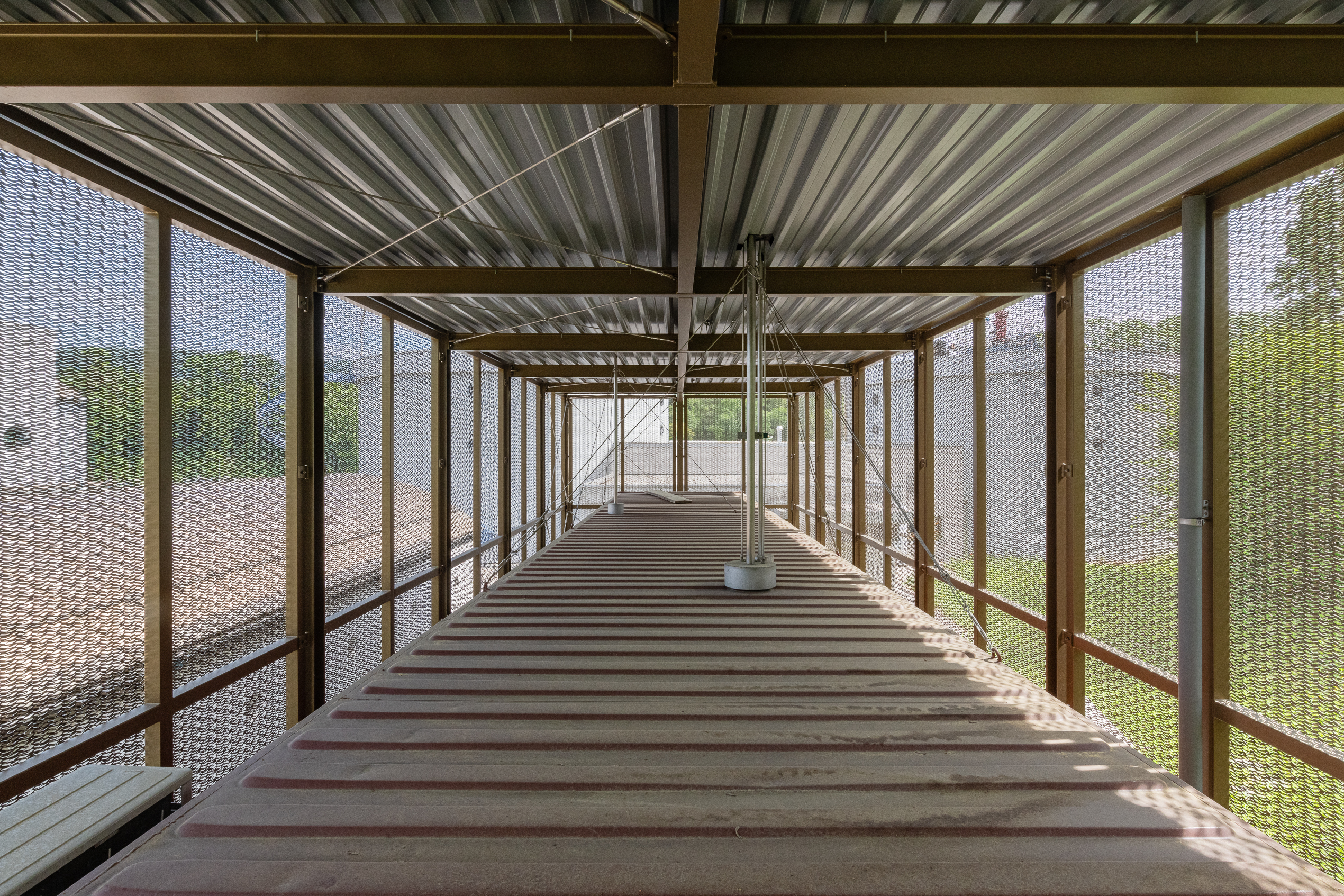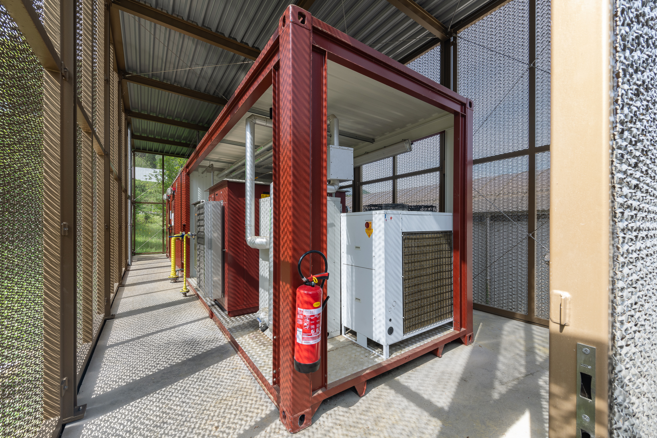 Für die Biogas-Aufbereitungsanlage in Turgi haben wir den Stahlbau mit einer Streckmetallfassade geplant. In dieser Anlage wird das Gas, das während der Abwasserreinigung entsteht, so aufbereitet, dass es dem Erdgasnetz der Regionalwerke hinzugefügt werden kann. Der Container der Anlage ist mit einer luftdurchlässigen Hülle versehen, die ihn vor Witterungseinflüssen schützt. Die Materialwahl spiegelt sowohl die fortschrittliche Technologie der Anlage als auch das industrielle Umfeld wider.