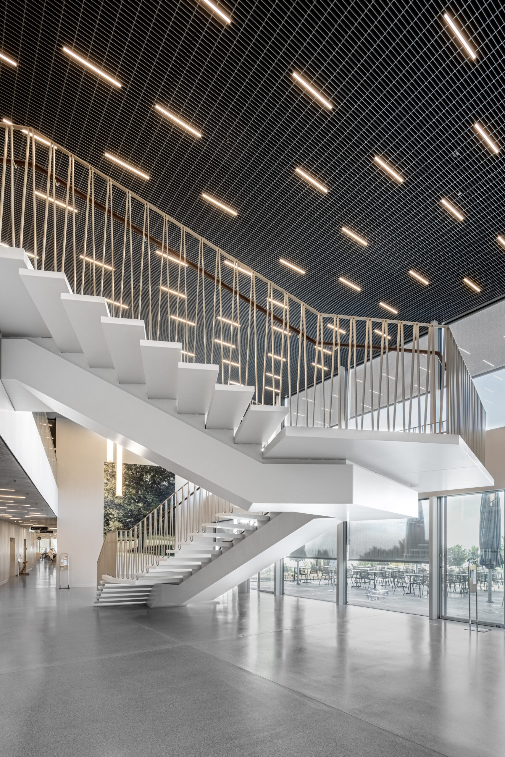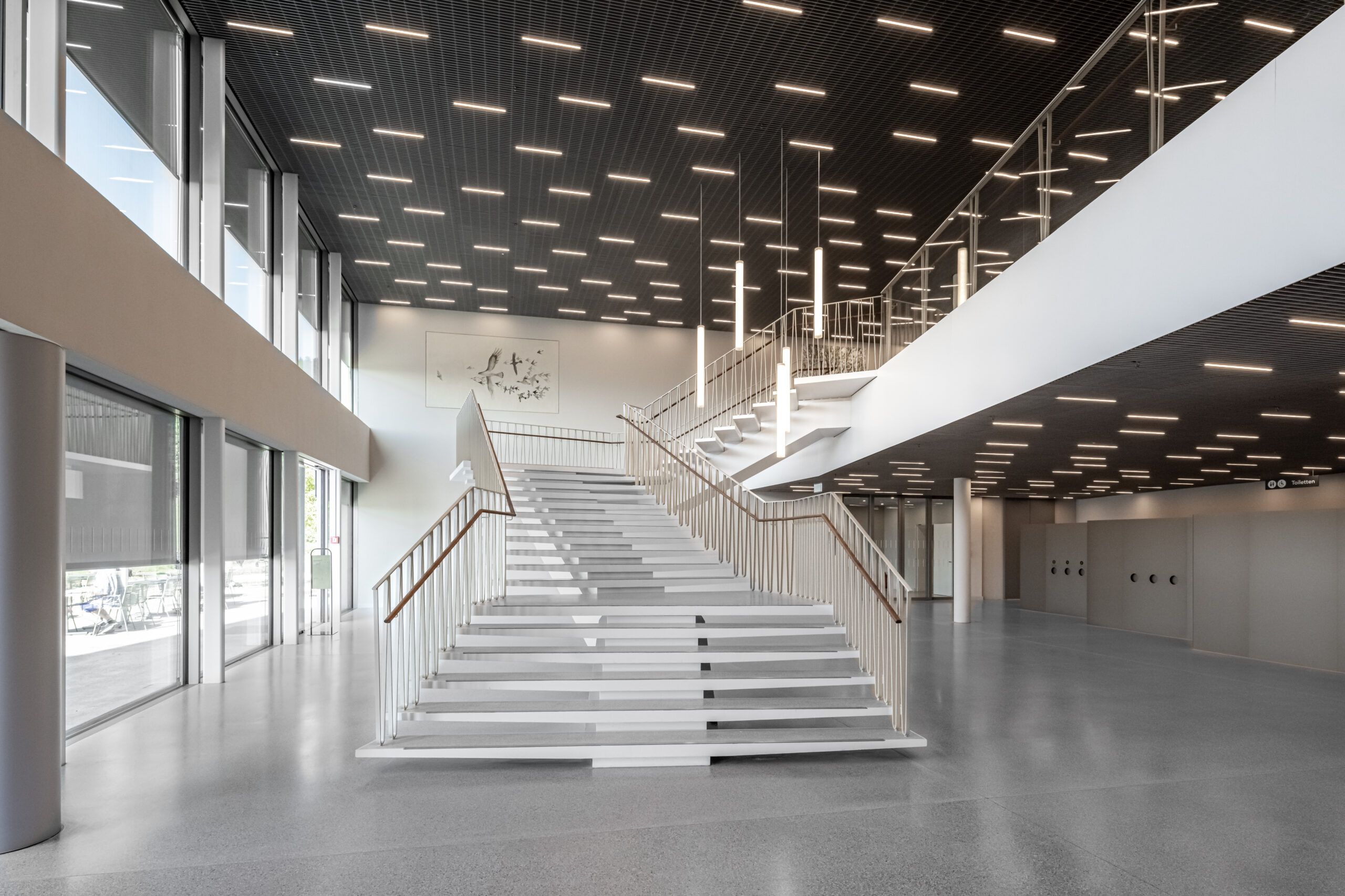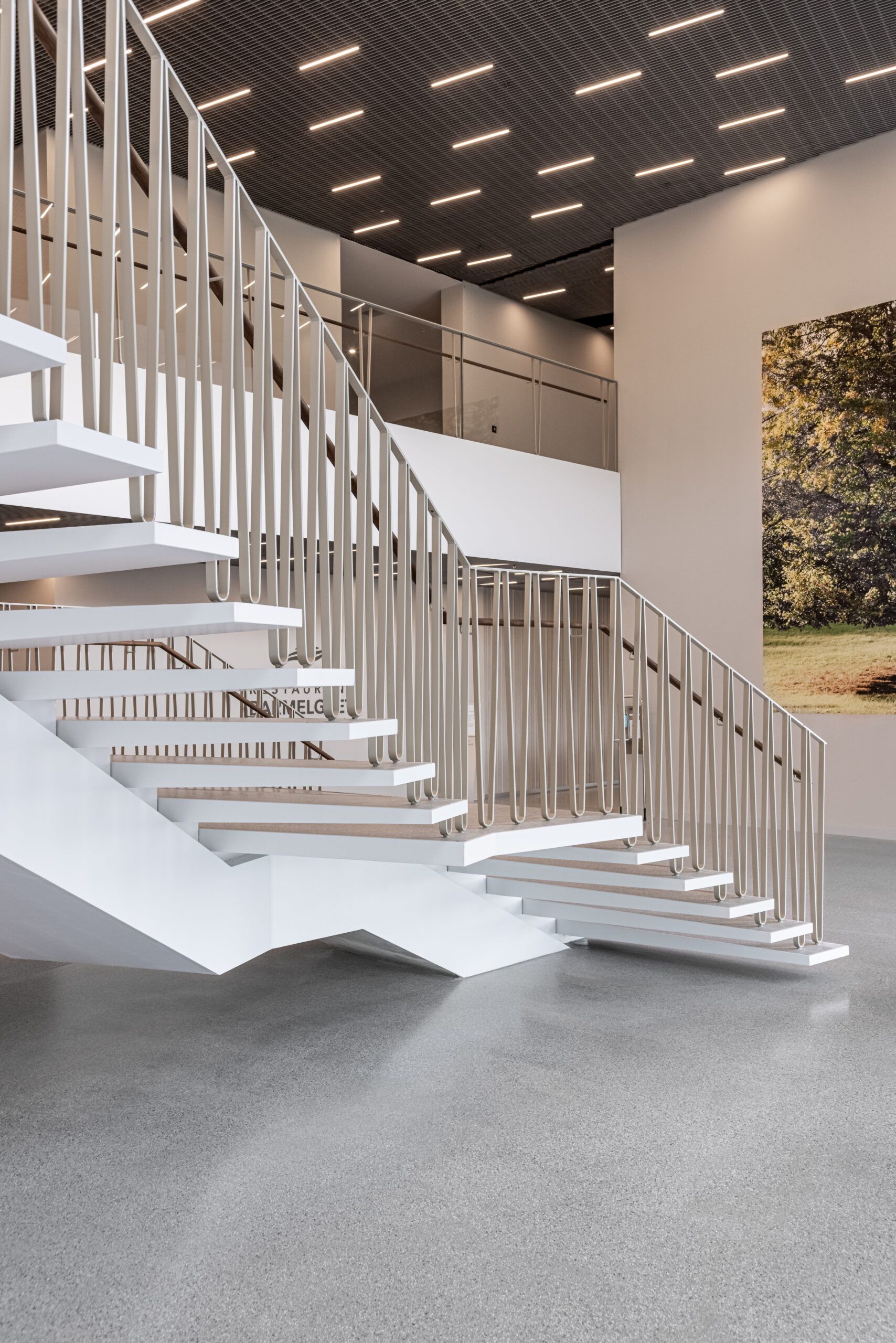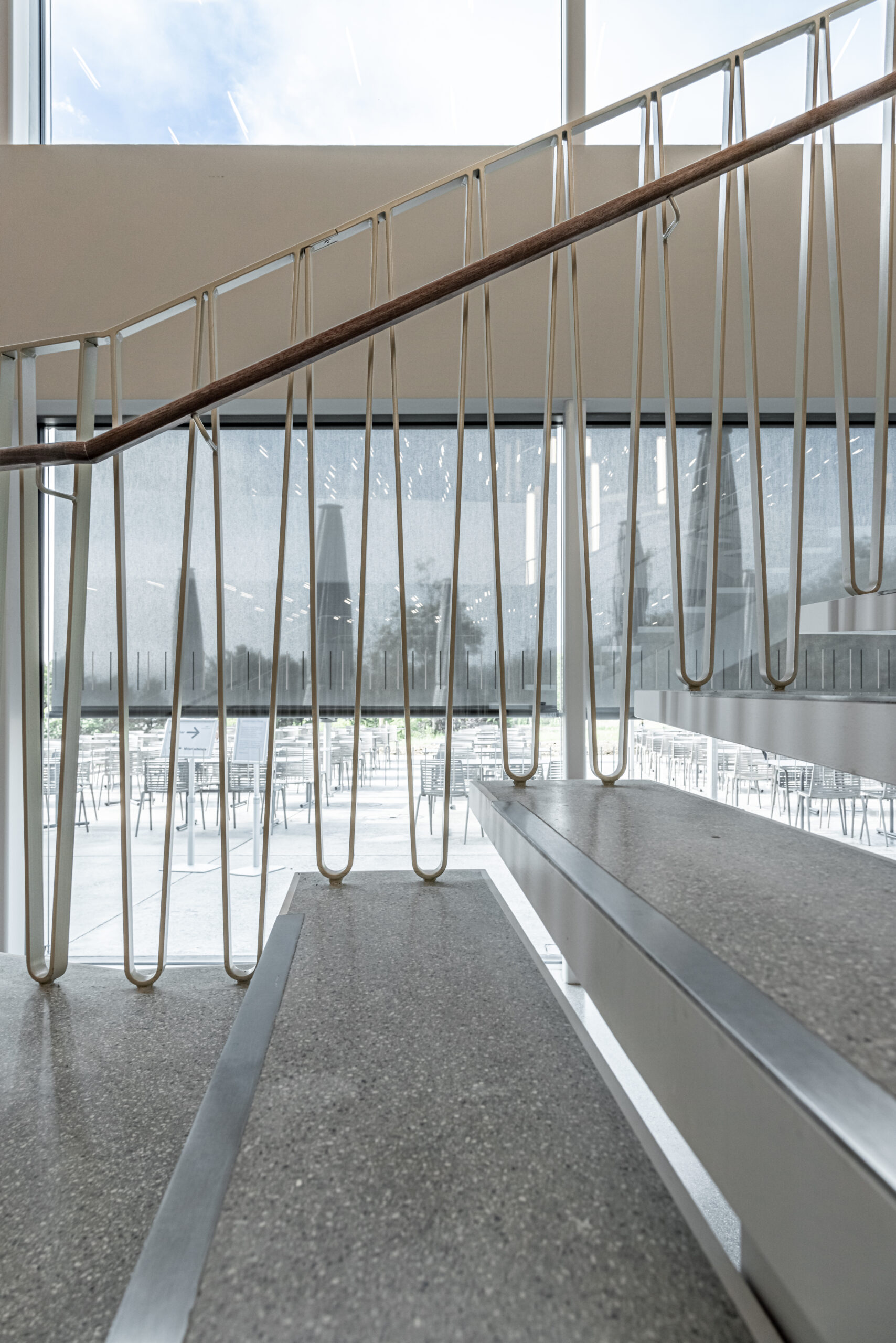 Neben der komplexen Geometrie galt es auch, die statische Konstruktion optimal zu entwickeln und den Tragholm sicher mit dem Bauwerk zu verbinden. Diese anspruchsvollen Anforderungen wurden durch eine präzise Planung und innovative Lösungen gemeistert, die der Treppe ihre besondere Ästhetik und Funktionalität verleihen.