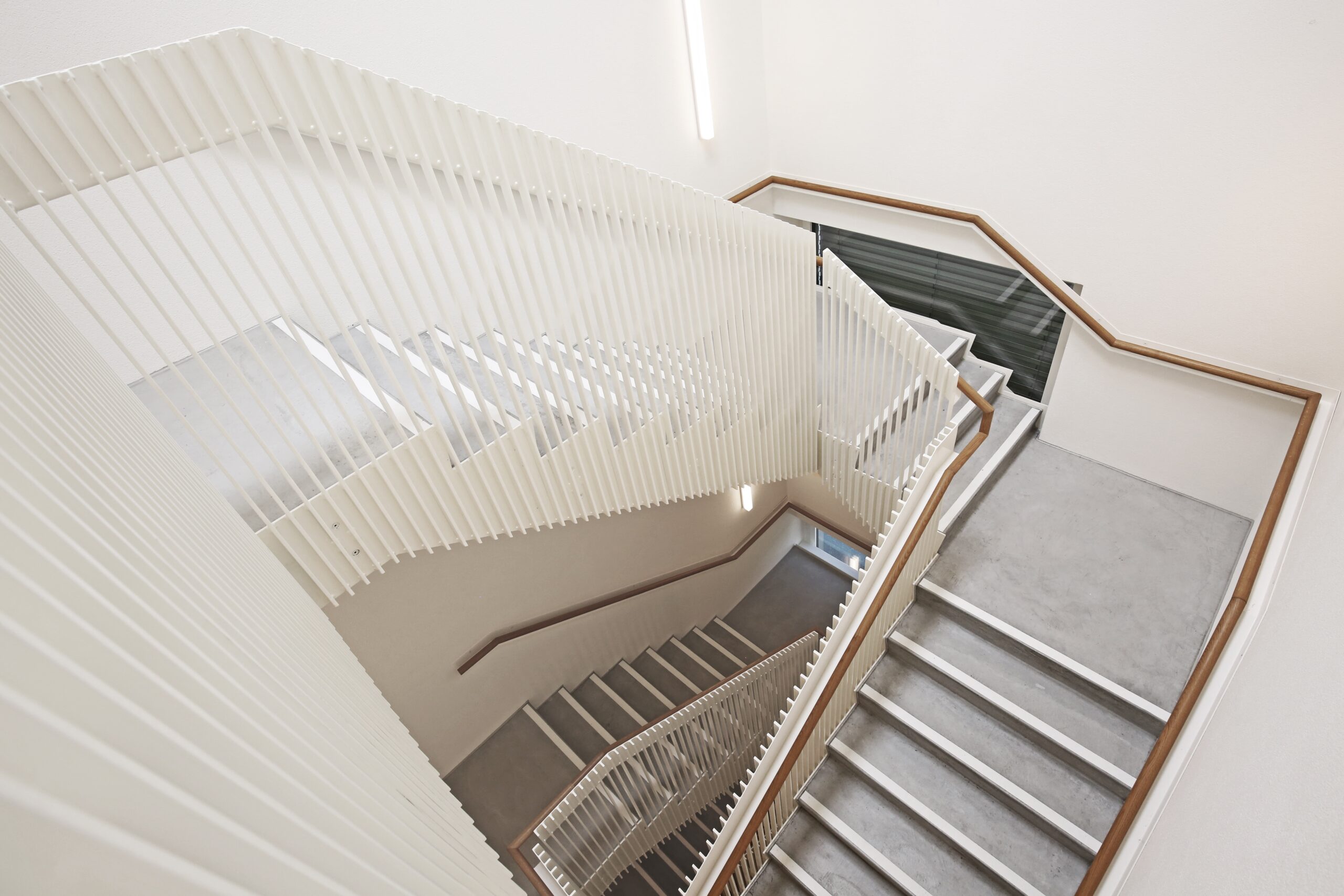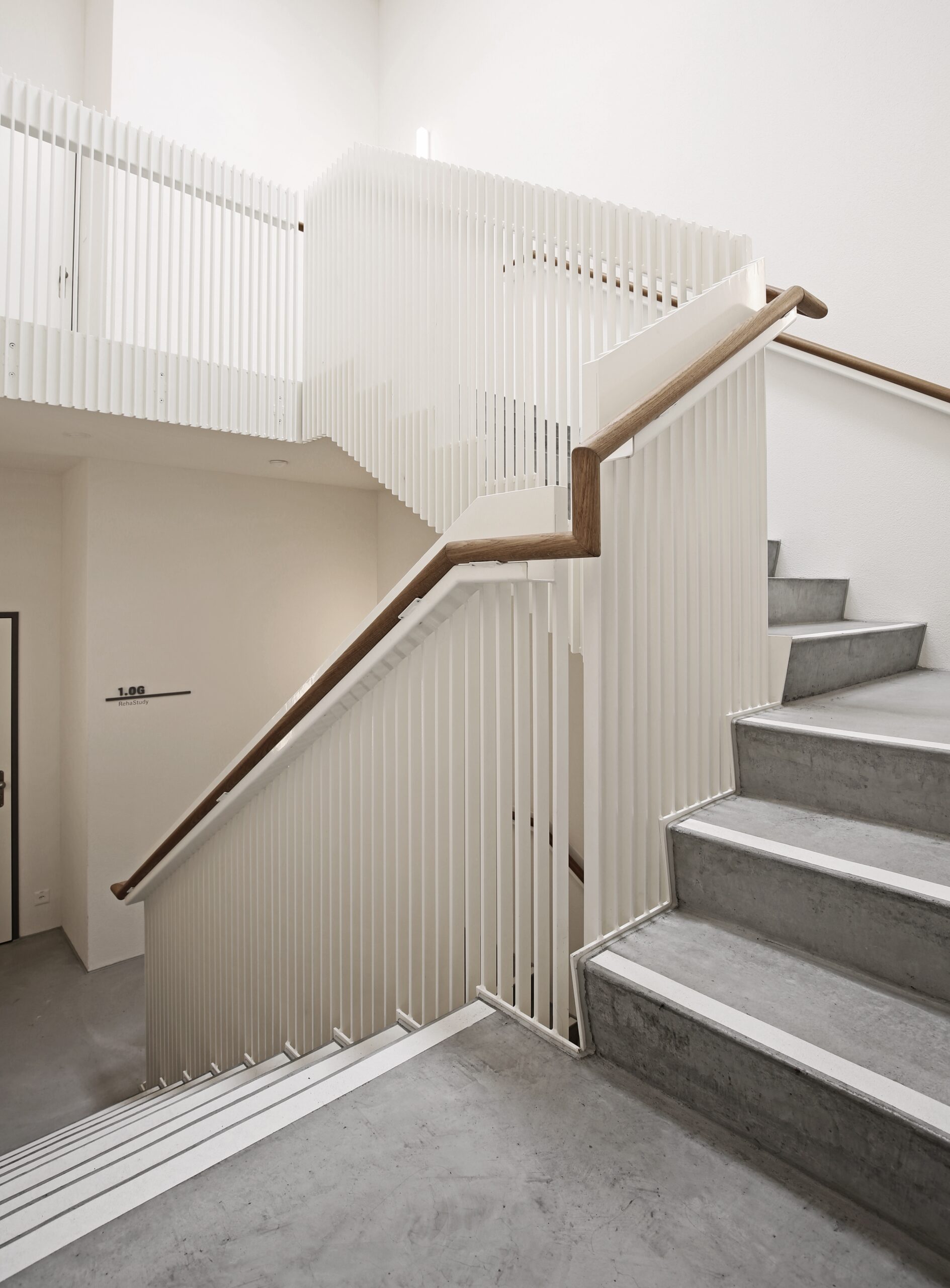 Handlaufs und den schlichten, aber robusten Treppenstufen aus Beton, verleiht dem Raum eine