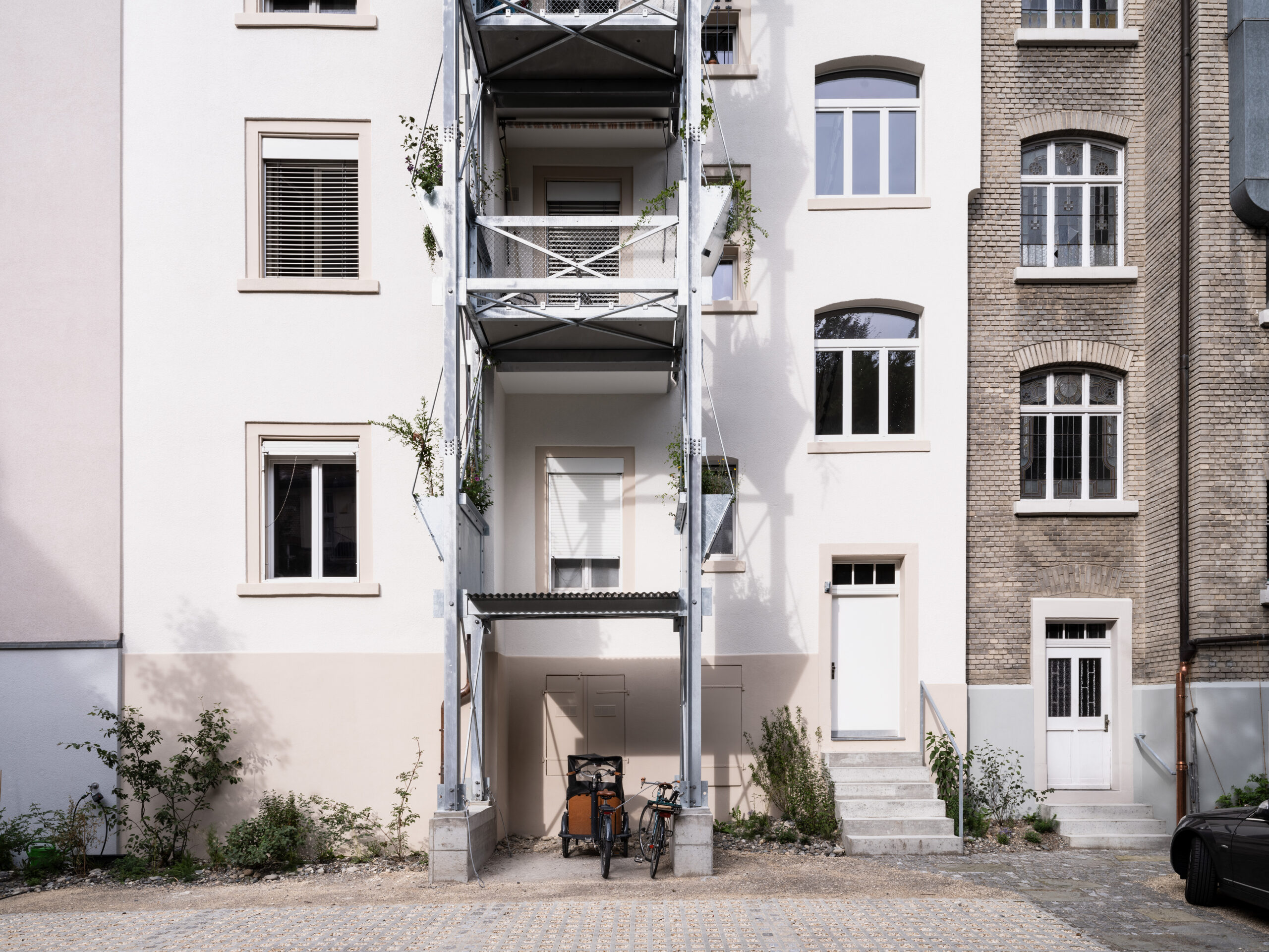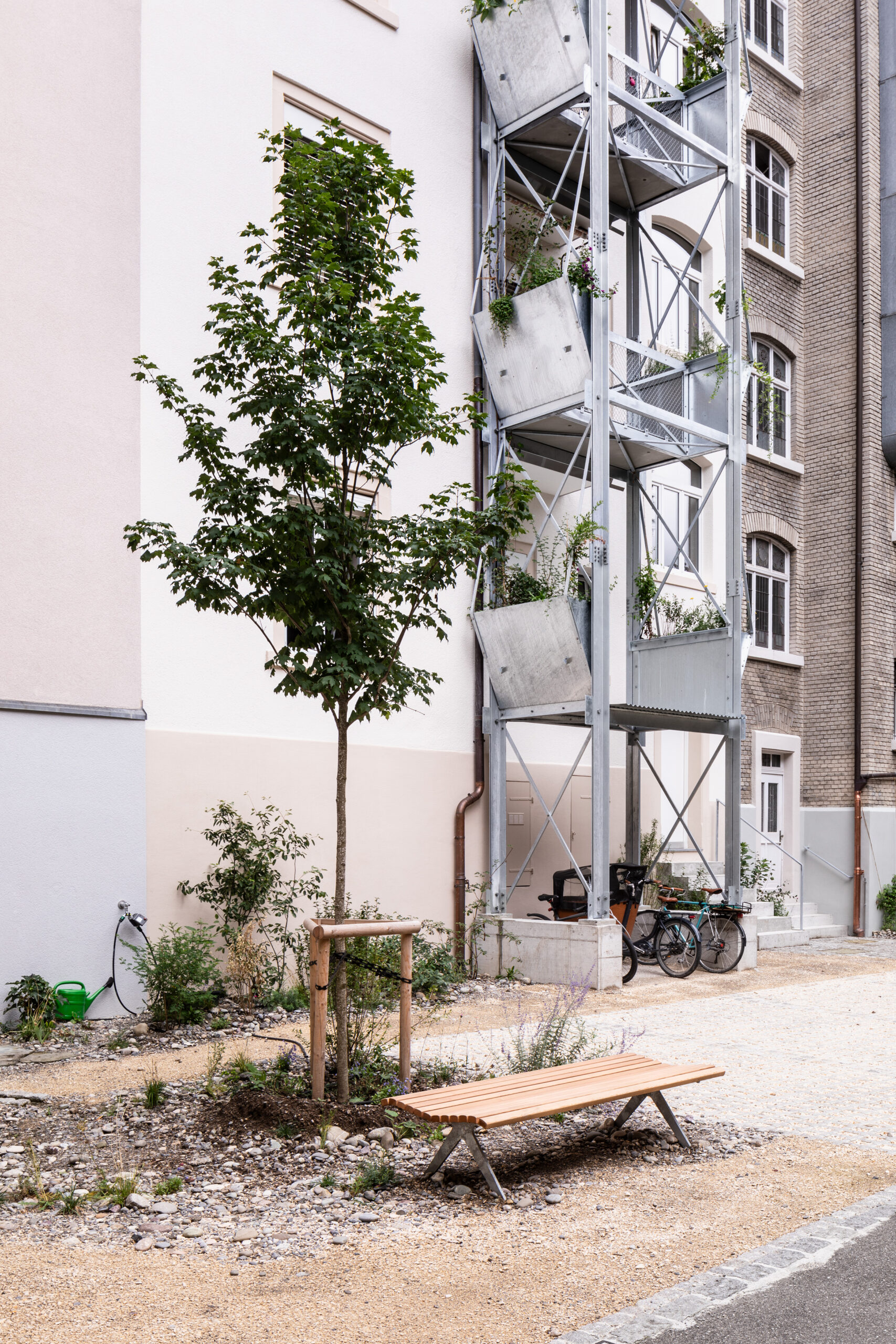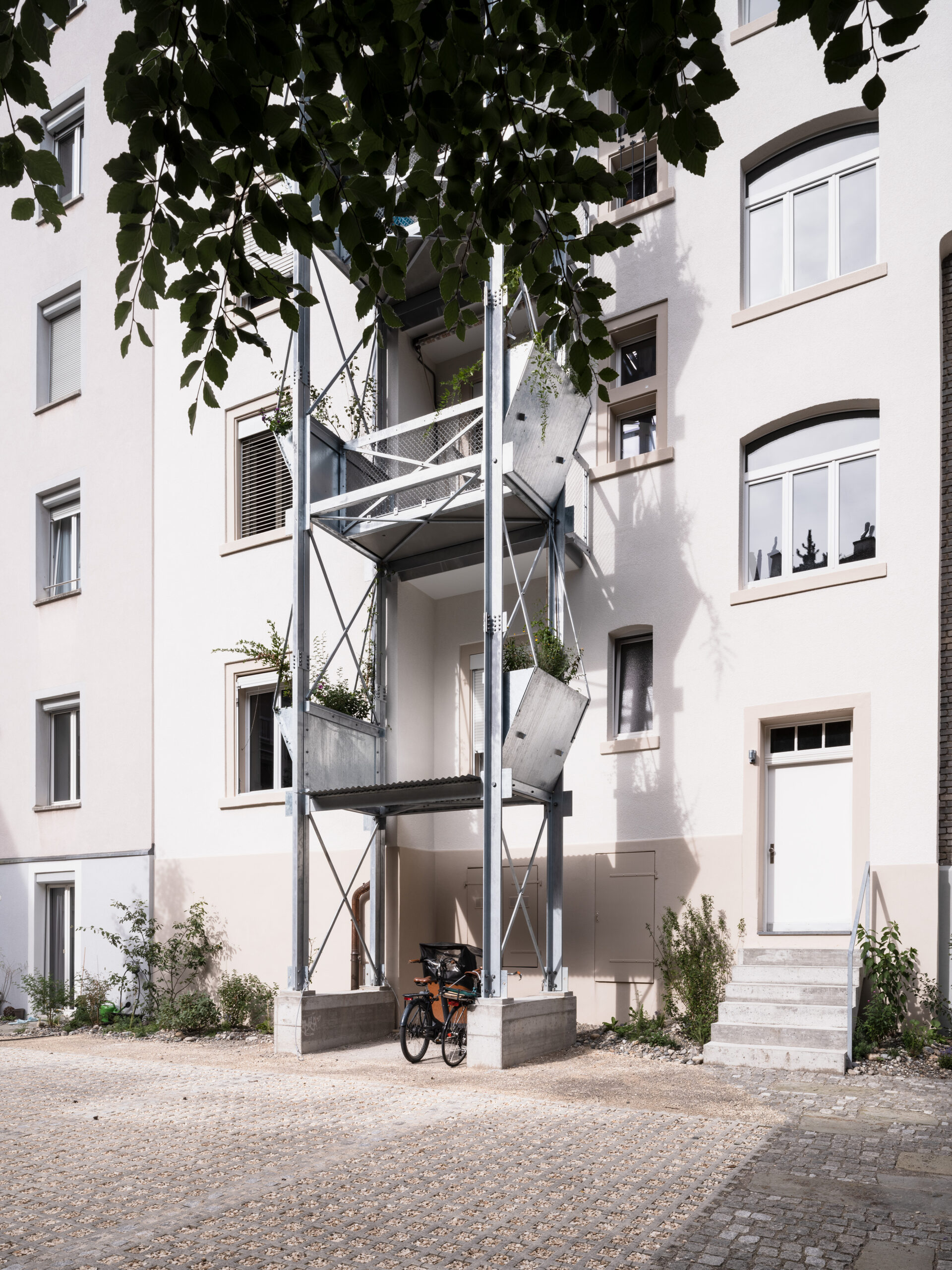 An der Stampfenbachstrasse 159 im Zürcher Stadtkreis 6 wurden wir mit der Planung einer innovativen Balkonerweiterung beauftragt, bei der teilweise wiederverwendete Stahlteile zum Einsatz kamen. Die zehn Pflanztröge, die insgesamt 3m³ Erdvolumen beherbergen, schaffen vertikale grüne Oasen. Eine besondere Herausforderung bestand darin, die Stahlkonstruktion vollständig verschraubt auszuführen, abgesehen von den Balkonböden, auf denen eine Betonplatte als Belag verlegt wurde. Die einzelnen Etagen der Konstruktion wurden im Werk vormontiert und später auf der Baustelle zu einer harmonischen Einheit zusammengesetzt.